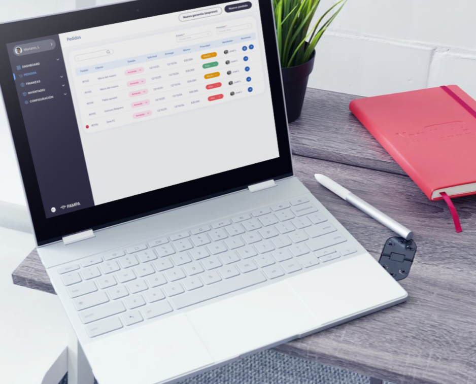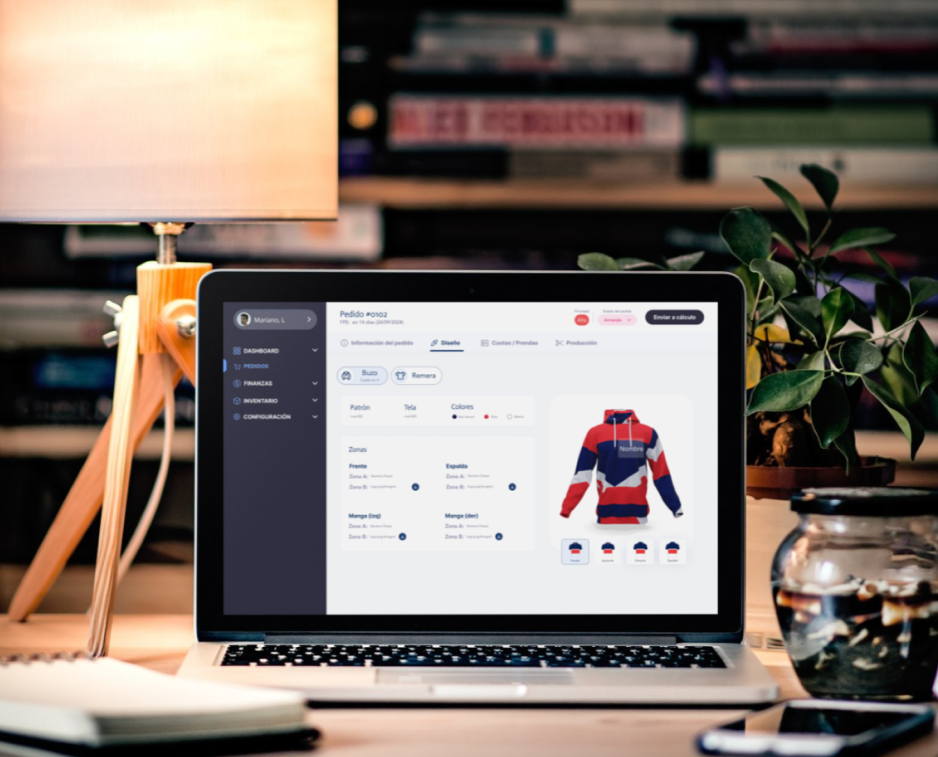 Pampa es una empresa dedicada a la confección de indumentaria escolar, deportiva y corporativa personalizada. Su proceso operativo estaba completamente basado en papel, lo que generaba errores, demoras y falta de trazabilidad. Fui responsable del rediseño integral de su ecosistema digital, creando una experiencia unificada tanto para los usuarios que diseñan sus prendas como para el equipo interno que gestiona pedidos, producción y stock.