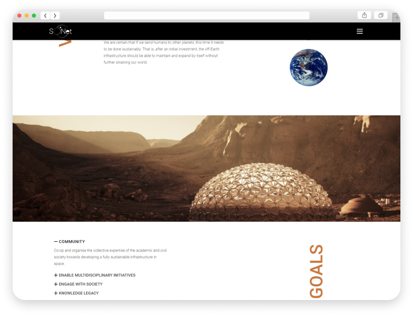 Generar un sitio impactante, que muestra la visión y el objetivo de la empresa con un gran énfasis en los miembros de la comunidad de este increíble proyecto.