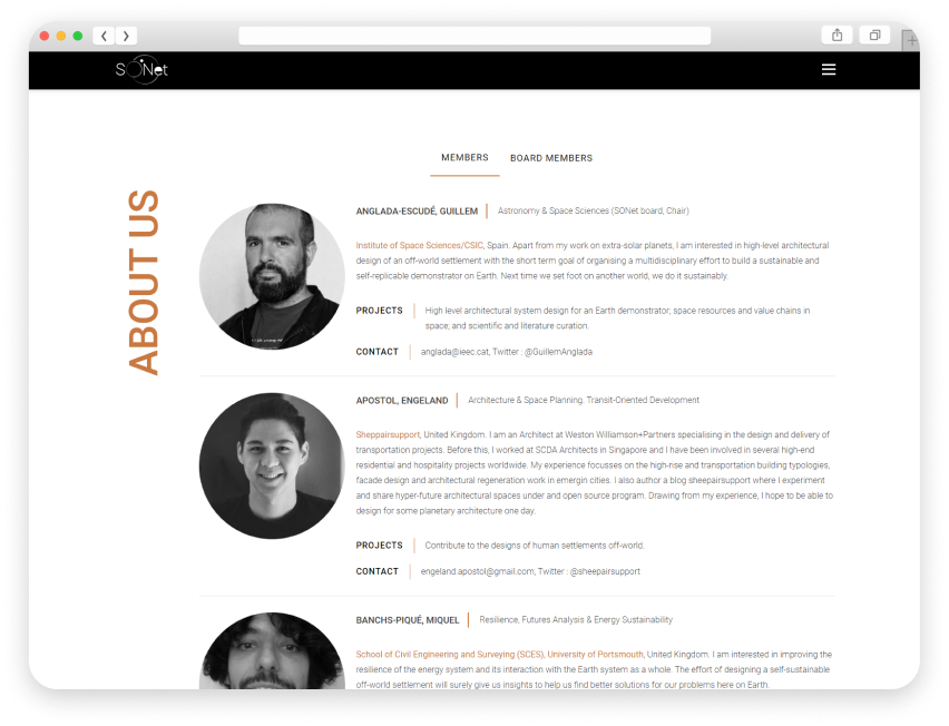 La Red Sostenible Fuera del Mundo, integra a profesionales de Astronomía, Arquitectura, Energías renovables, Astrobiología e Ingeniería, entre otros. Desarrollan un proyecto ambicioso y amigable con el planeta Tierra. Por medio de las colaboraciones en comunidad impulsan a la investigación e innovación, su objetivo es enviar a humanos capacitados a vivir a otros planetas, esta vez de manera sostenible, sin perjudicar al nuestro.